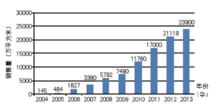 根據(jù)中國印刷及設(shè)備器材工業(yè)協(xié)會對全國版材生產(chǎn)企業(yè)的統(tǒng)計顯示,2013年我國本土實際生產(chǎn)膠印版材總產(chǎn)量已達(dá)3.46億平方米。其中,CTP版的生產(chǎn)量為2.45億平方米,同比增長11%;CTP版的總銷售量達(dá)2.39億平方米,同比增長13%?! ∥覈鳦TP版的起步階段較長,2004年國內(nèi)CTP版基本依靠進(jìn)口。然而經(jīng)過近十年的努力,現(xiàn)在我國本土生產(chǎn)的CTP版除了可滿足國內(nèi)不斷增長的需求之外,還有較大量的出口。特別是2010~2013年,國內(nèi)CTP版用戶數(shù)量大增,促進(jìn)了CTP版產(chǎn)銷量直線上升。圖1顯示出2004~2013年我國本土生產(chǎn)的CTP版銷售量情況。