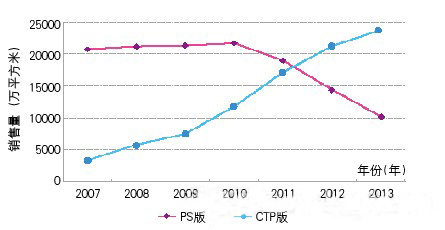 CTP版與PS版銷售總量對比: