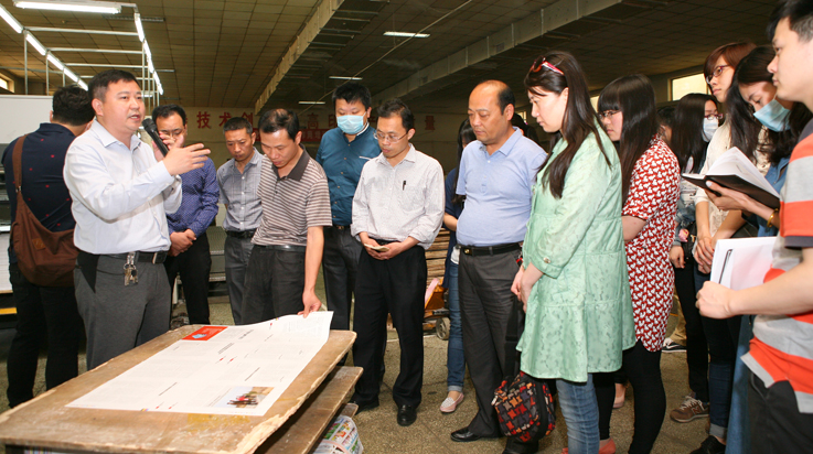 王在東總經(jīng)理陪同領(lǐng)導(dǎo)參觀交流裝訂車間