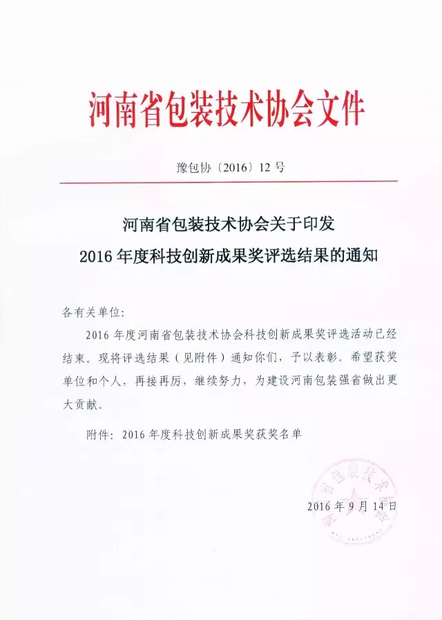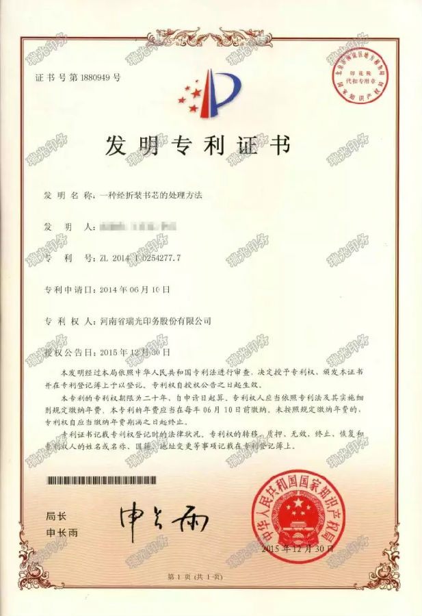 近日,瑞光印務的一項發(fā)明專利《一種經(jīng)折裝書芯的處理方法》榮獲2016年度河南省包裝技術協(xié)會科技創(chuàng)新成果二等獎。