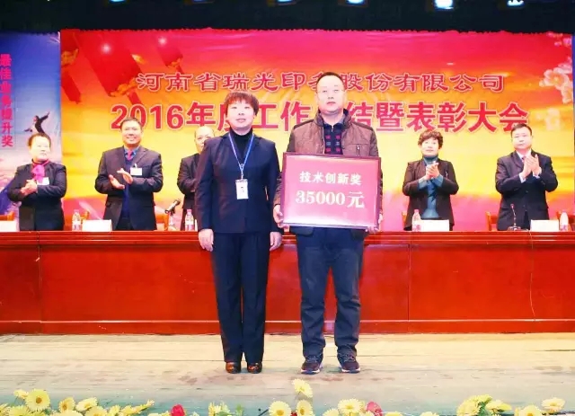 2017年1月25日下午,河南瑞之光文化產(chǎn)業(yè)集團(tuán)、河南省瑞光印務(wù)股份有限公司2016年度工作總結(jié)暨表彰大會(huì)和2017春節(jié)聯(lián)歡會(huì)在公司隆重舉行。瑞光印務(wù)公司總經(jīng)理王在東先生做“2016年度工作總結(jié)暨2017年度工作計(jì)劃”的報(bào)告。集團(tuán)總裁、黨支部書記張歌偉先生做重要講話。