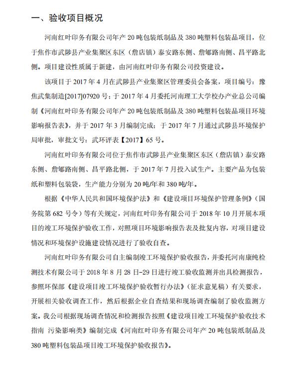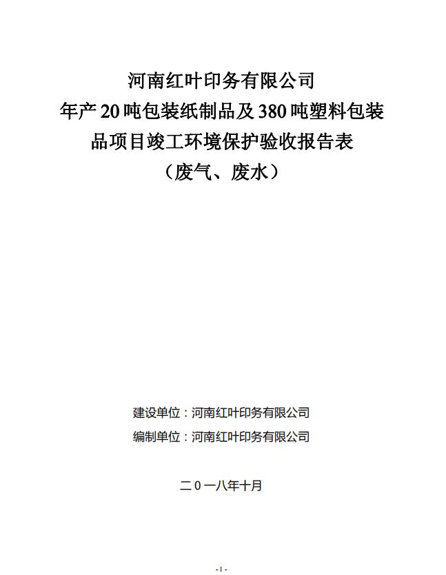 紅葉印務(wù)年產(chǎn)20噸包裝紙制品及380噸塑料包裝品項(xiàng)目竣工環(huán)保驗(yàn)收報告